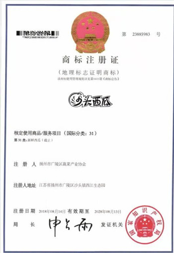 代理狮据悉:在扬州要问卖得最火的西瓜莫过于“沙头西瓜”,但是怎样才能买到正宗“沙头西瓜”一度令消费者一筹莫展。10月17日,“沙头西瓜”正式获得国家知识产权局颁发的地理标志证明商标,意味着“沙头西瓜”商标权将受法律保护,获得相关机构授权才可以使用。