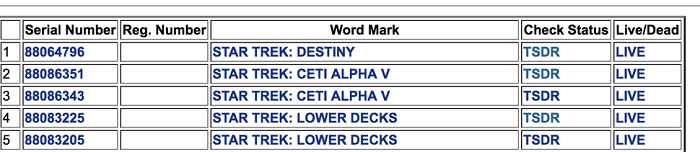 代理狮,据了解:我们早已知道,《发现号》并不是唯一一部即将播出的《星际迷航》电视剧集。首先,CBS 在本周四宣布了一个全新的动画系列。其次,最新曝光的商标申请文件表明,CBS 还在筹备《命运号》(Destiny)、《阿尔法五号》(CETI Alpha V)、以及《下甲板》(Lower Decks)等内容。