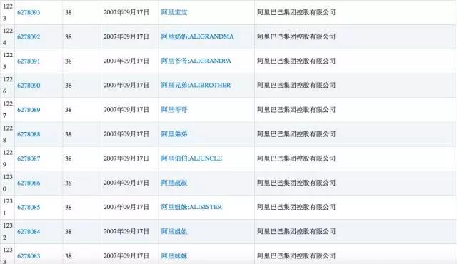 △阿里巴巴注册的部分商标(图/国家工商总局商标局网站截图)